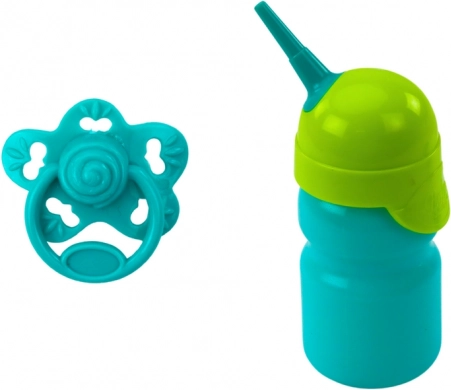 Zum Set gehört eine Flasche, die man mit Wasser füllen kann. Nach dem Füttern kann die Puppe urinieren, was es Kindern ermöglicht, das Pflegen eines Babys zu üben und Verantwortung zu lernen.