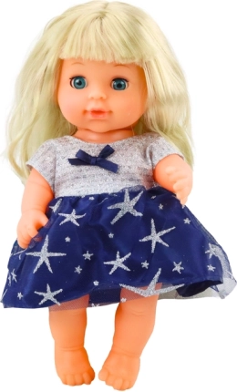 Die Puppe hat lange blonde Haare und ein wunderschönes Matrosenkleid, das in verschiedene Frisuren gestylt werden kann. Sie kommt mit beweglichen Gliedmaßen und schließenden Augen, die den Schlaf eines Babys nachahmen.