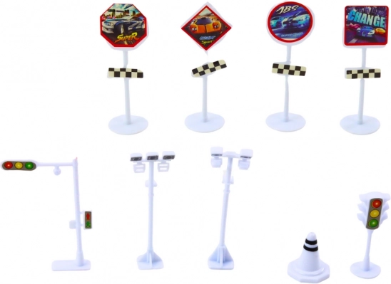 In der Verpackung finden Sie ebenfalls ein Set aus Verkehrszeichen und eine Unterlage, die eine Verkehrsumgebung simuliert und das Spiel bereichert.