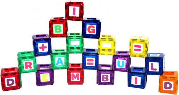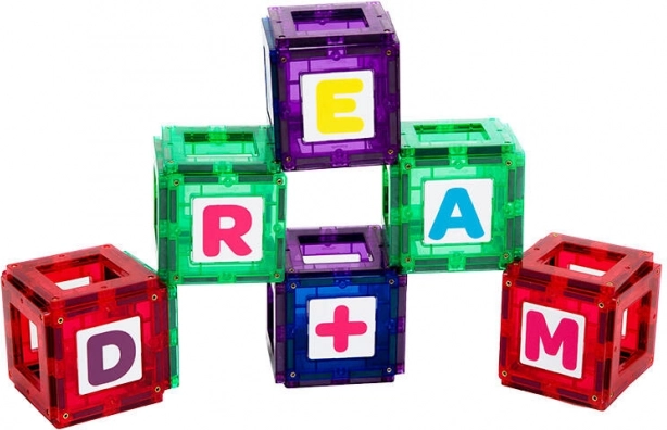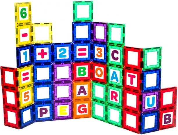 Quadratische Teile mit extra starken Magneten ermöglichen stabile und hohe Bauten, wodurch die technischen und räumlichen Fähigkeiten Ihrer Kinder gefördert werden.