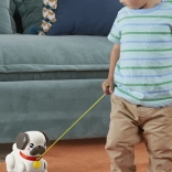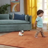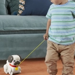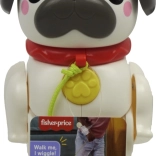 Sobald das Kind an der Schnur zieht, beginnt der Mops, seine Ohren und Pfoten zu bewegen und fröhlich zu bellen – das lädt zu weiterem Entdecken ein.