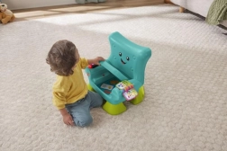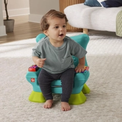 Der Smart Stages™ Sessel von Fisher-Price® bietet Ihrem Kind einen gemütlichen Ort zum Spielen und Entdecken. Der interaktive Sessel erkennt, wenn sich das Kind hinsetzt oder aufsteht, und reagiert mit lustigen Liedern und Sätzen! Sobald sich das Kind hinsetzt, warten viele spaßige Aktivitäten: eine leuchtende Fernbedienung mit Tasten für Zahlen und Formen, ein umblätterbares Büchlein und ein aufklappbares Kissen mit versteckten Überraschungen. Die drei Smart Stages™ Lernstufen enthalten über 120 Lieder, Geräusche und Sätze, die Kindern beim Spielen Farben, Formen, Zahlen, Zählen und Gegensätze näherbringen. Über die Globus-Taste können Sie die Sprache wählen: Polnisch, Ungarisch, Tschechisch, Slowakisch oder Englisch. Farben und Ausführung können variieren. Alter: 12 Monate+