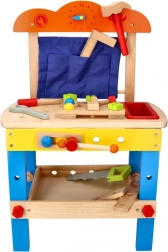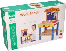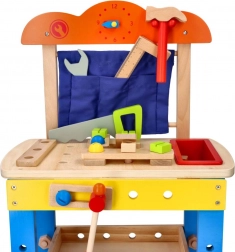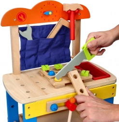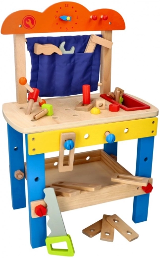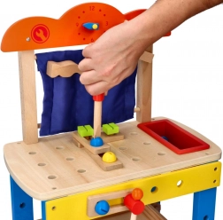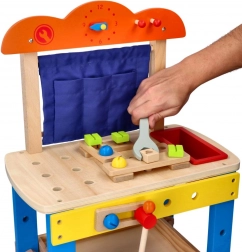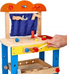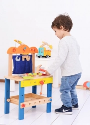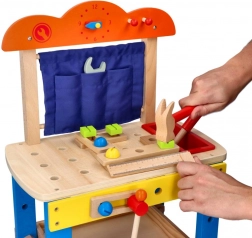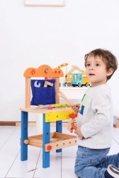 Diese hochwertige Holzwerkbank wurde entwickelt, um Kinder sicher mit der Welt der Werkzeuge vertraut zu machen. Bunte Elemente, funktionale Teile wie Schrauben, Muttern und Zahnräder sowie ein praktisches Fach für Werkzeuge fördern natürliche Neugier und Fähigkeiten.