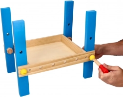 Schrauben, Hämmern und Zusammensetzen der Teile entwickeln Motorik und Vorstellungskraft. Bunte Elemente laden zu langem und sinnvollem Spiel ein.