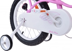 ROYALBABY Little Swan 14" ist ein bezauberndes Kinderfahrrad in rosa-weißer Farbkombination, entwickelt für die ersten Fahrten mit maximalem Fokus auf Sicherheit, Komfort und leichtes Lernen. Der leichte Stahlrahmen erleichtert das Auf- und Absteigen und die voluminösen Reifen mit rutschhemmendem Profil sorgen für sicheren Bodenkontakt.