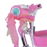Der ergonomische Lenker mit weichen Griffen, Klingel und Fransen erfreut kleine Fahrerinnen, während die Kombination aus vorderer Seitenzug- und hinterer Trommelbremse ein sanftes und sicheres Bremsen ermöglicht. Stützräder geben zusätzliche Stabilität beim Lernen und der praktische Korb fasst Kleinigkeiten. Den Fahrkomfort ergänzt ein weicher, höhenverstellbarer Sattel mit Führungsgriff.