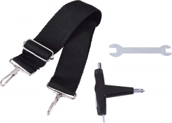 Tragegurt (Länge 70 cm), Inbusschlüssel, Maulschlüssel, Ständer