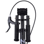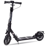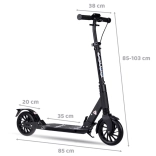 Dieser robuste City-Scooter überzeugt durch die Kombination aus Komfort und Sicherheit. Die manuelle Scheibenbremse in Verbindung mit der Reibungsbremse im Schutzblech und einem Reflektor erhöht Kontrolle und Sichtbarkeit. Die Federung dämpft Unebenheiten und sorgt zusammen mit den großen Rädern für eine sanfte Fahrt auf Asphalt und weniger ebenen Gehwegen.