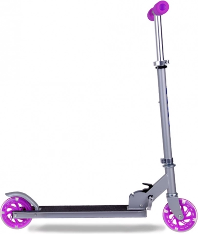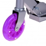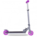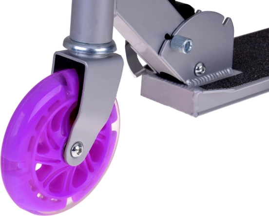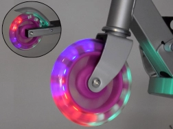 Dieser klappbare Kinderroller vereint Leichtigkeit, Robustheit und Sicherheit. Die Räder leuchten während der Fahrt automatisch dank magnetischer Energie, Batterien sind nicht erforderlich. Die Metallkonstruktion aus Aluminium und Stahl gewährleistet Langlebigkeit und ein geringes Gewicht für einfache Handhabung.
