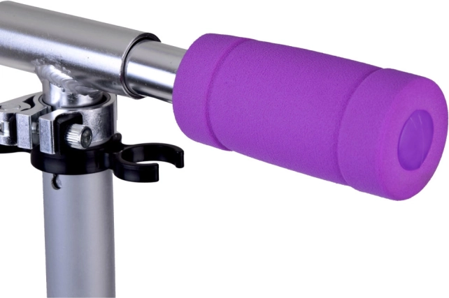 Die Lenkerhöhe lässt sich bequem in drei Stufen einstellen, die Schaumstoffgriffe liegen angenehm in der Hand und die rutschfeste Trittfläche hält den Fuß auch bei längeren Fahrten sicher. Die Fußbremse am Hinterrad ermöglicht ein schnelles und sanftes Anhalten, und der klappbare Ständer erleichtert das Abstellen überall.