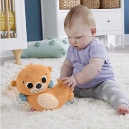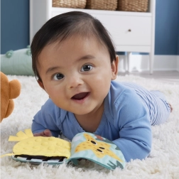 Stellen Sie das Büchlein mit Spiegel auf den Rücken des Otters, um das Anheben des Köpfchens, den visuellen Fokus und die Hand-Auge-Koordination zu fördern.