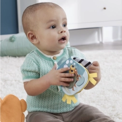 Das Stoffbüchlein mit kontrastreichen Farben, knisternden Details und sicherem Spiegel unterstützt die sensorische Entwicklung, die Konzentration und die Hand-Auge-Koordination. Die kompakten Maße von Otter und Büchlein machen sie zu perfekten Gefährten für Zuhause und unterwegs.