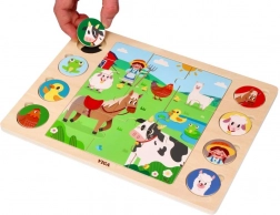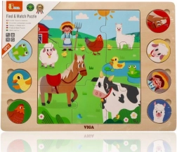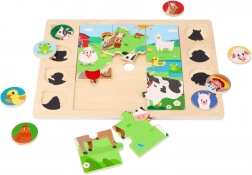 Viga Holzpuzzle Schatten zuordnen – Bauernhof, 17 Teile