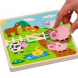 Beim korrekten Einsetzen eines Teils ertönt der charakteristische Laut des Bauernhoftiers, was Erkennen und Merkfähigkeit unterstützt.