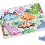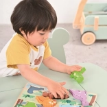 Die dickeren „Chunky“-Dinosaurierteile lassen sich leicht greifen, liegen gut in der Hand und können sicher in die Grundplatte eingesetzt werden – ideal für das erste Puzzle.