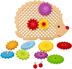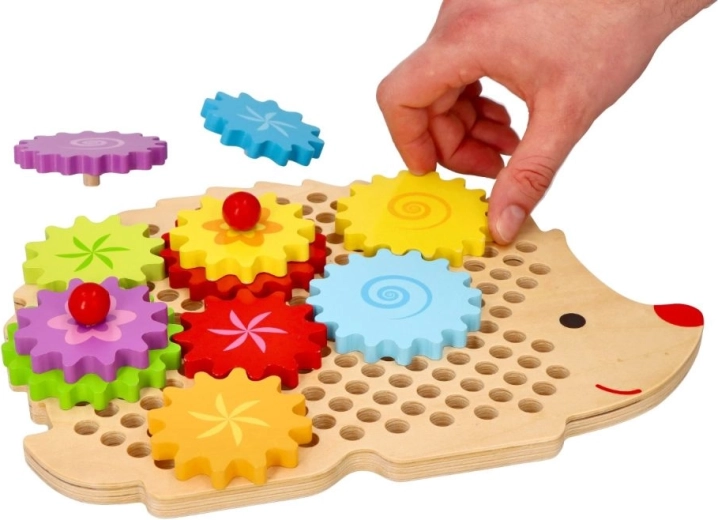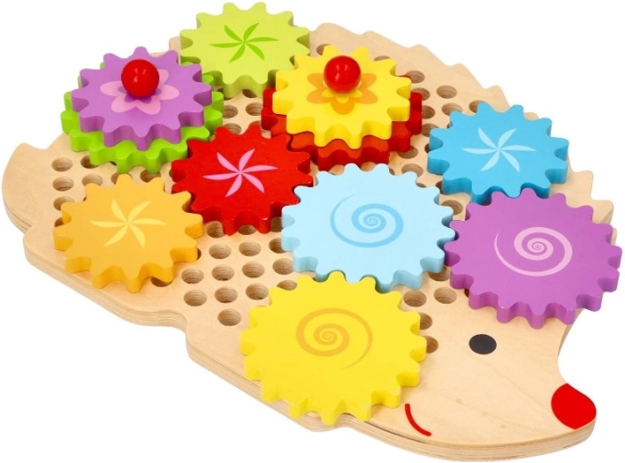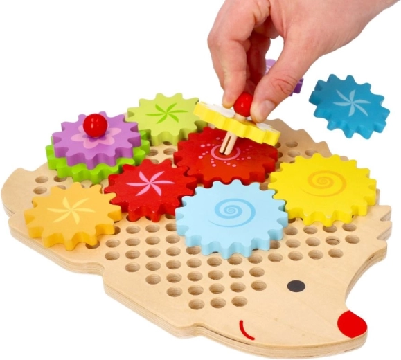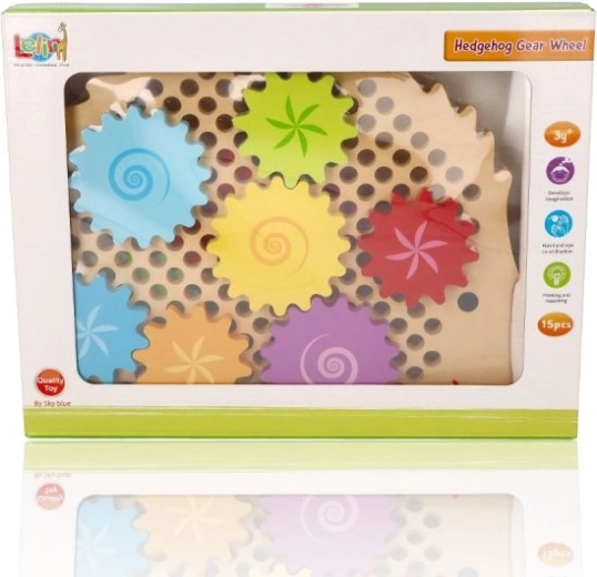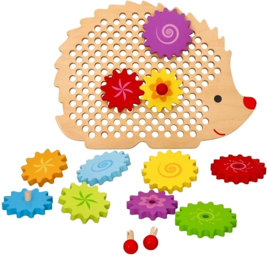 Unterhaltsames und lehrreiches Spielzeug für Kinder ab 3 Jahren – ein hölzerner Igel mit bunten Zahnrädern. Kinder trainieren Feinmotorik, Hand-Auge-Koordination und Farberkennung, während sie entdecken, wie Zahnräder zusammenarbeiten. Hochwertiges lackiertes Holz und eine sichere Ausführung für jede Menge kreative Spielfreude.