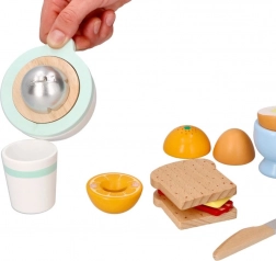 Dieses sorgfältig verarbeitete hölzerne Frühstücksset ist ideal für erste Küchenabenteuer. Kinder bereiten ihr eigenes Frühstück zu – vom Schneiden des Gebäcks bis zum Auspressen frischen Safts. Realistische Details und angenehme Pastellfarben laden zum Spielen ein und fördern die Vorstellungskraft.