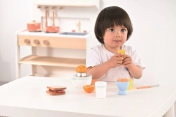 Der Umgang mit dem Ei im Becher, den Toasts und dem Messer trainiert Griff, Koordination und Vorstellungskraft bei Rollenspielen.