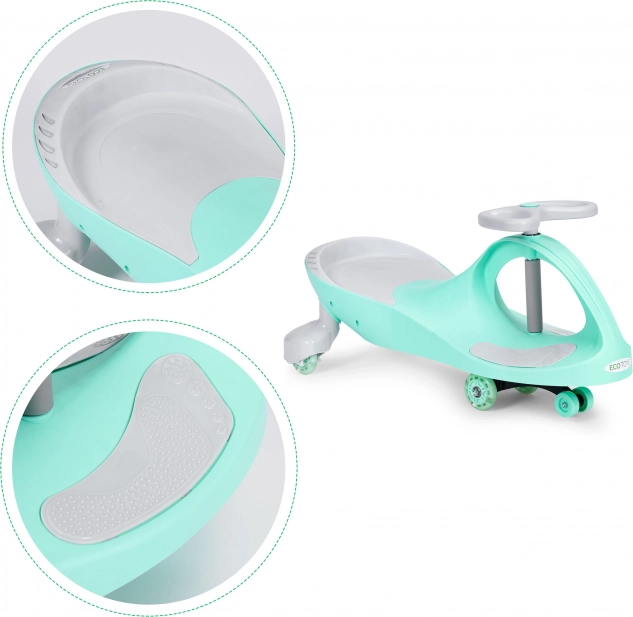 Das Wiggle-Rutschfahrzeug ECOTOYS macht jede Fahrt zum Abenteuer. Dank des speziellen Systems wird es allein durch kreisende Lenkbewegungen nach links und rechts angetrieben, was die Balance und Motorik der Kinder fördert. Die leichte, aber robuste Konstruktion ist ideal für den Einsatz zu Hause und auf glatten Außenflächen.