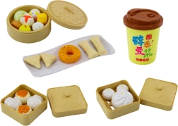 Dieses Set enthält alles, was kleine Hände für die Zubereitung eines leckeren, imaginären Frühstücks benötigen. Es umfasst bunte und funktionale Essensbehälter, eine stilvolle Tasse für den morgendlichen Kaffee zur Nachahmung von Erwachsenen, verschiedene Gemüsearten, die geschnitten und serviert werden können, Snacks, die wie echte aussehen, elegante Teller und Stäbchen zum Erlernen des asiatischen Essensstils.