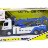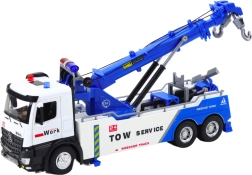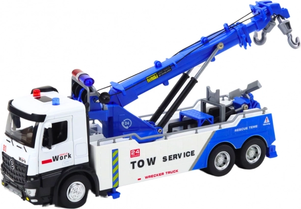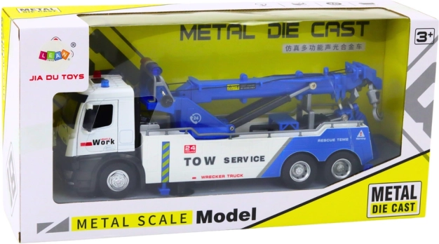 Das Führerhaus des Autokrans ist aus Metall gefertigt, was seine Haltbarkeit und authentisches Aussehen erhöht. Robustheit und Liebe zum Detail spiegeln sich auch in den Gummirädern wider, die hervorragenden Grip auf Oberflächen bieten. Dank des Antriebs bewegt sich der Autokran mit leichtem Druck nach vorne, was dem Spiel Dynamik verleiht.