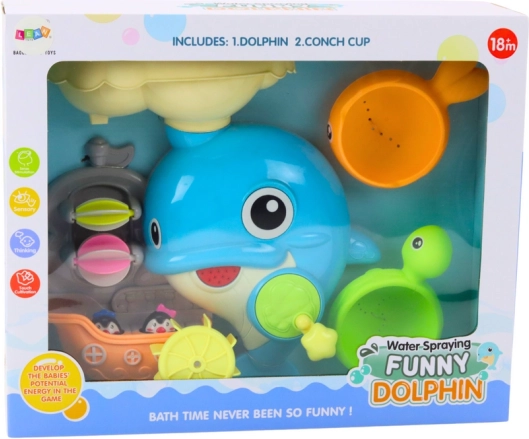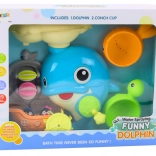 Aktivieren Sie den Delfin durch das Eingießen von Wasser, um Teile zum Bewegen zu bringen, die während des Bades für Unterhaltung sorgen.