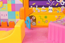 Starte die Party in großem Stil! Das Partyzimmer von Gabbys Katzenhaus bietet eine Rampe zum Skaten, eine Bühne für Auftritte und eine „Eisbahn“. Zwei detailreiche Figuren mit funktionsfähigen Rollen erwecken jede Show zum Leben, und farbenfrohes Zubehör sorgt für die perfekte Partystimmung. Interaktive Fidget-Elemente an der Wand fördern das sensorische Spiel und halten die Aufmerksamkeit der Kinder.