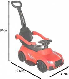 Dank der cleveren 3-in-1-Konstruktion können ausgewählte Teile demontiert werden, um schrittweise vom sicheren Schiebemodus zum Rutschauto und schließlich zum sportlichen „Rennwagen“ zu wechseln. Das Fahren hilft, Koordination, Gleichgewicht und Geschicklichkeit zu fördern – das Kind stößt sich mit den Füßen ab, steuert mit dem Lenkrad und entdeckt die Welt selbstständig.