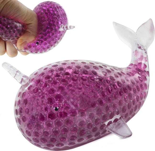 Der gelartige Narwal bietet dank der weichen Perlen im Inneren ein außergewöhnliches haptisches Erlebnis, die sich beim Drücken bewegen.