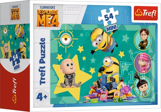 Tauchen Sie ein in das Abenteuer mit den beliebten Figuren aus dem Film Ich – Einfach unverbesserlich 4 dank dieser bunten Puzzles mit 54 Teilen. Genießen Sie das Zusammensetzen mit verschiedenen Motiven der beliebten Minions. Jede Verpackung enthält einen Mix aus vier abwechslungsreichen Mustern, sodass jedes Puzzleerlebnis neu und spannend wird.