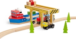 Das Spiel mit dem Kran entwickelt Feinmotorik, Hand-Auge-Koordination und logisches Denken. Gefertigt aus hochwertigem Holz und Metallelementen, mit sicheren Farben auf Wasserbasis. Passt perfekt zu bestehenden Eisenbahnstrecken und Hafenszenen.