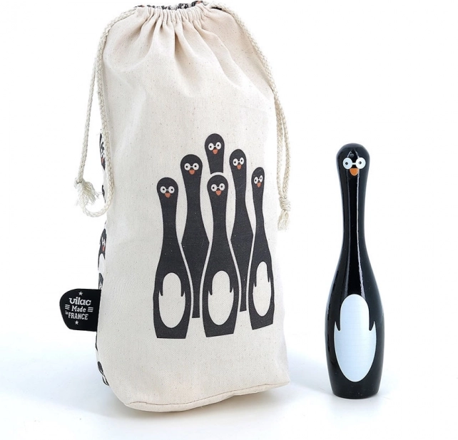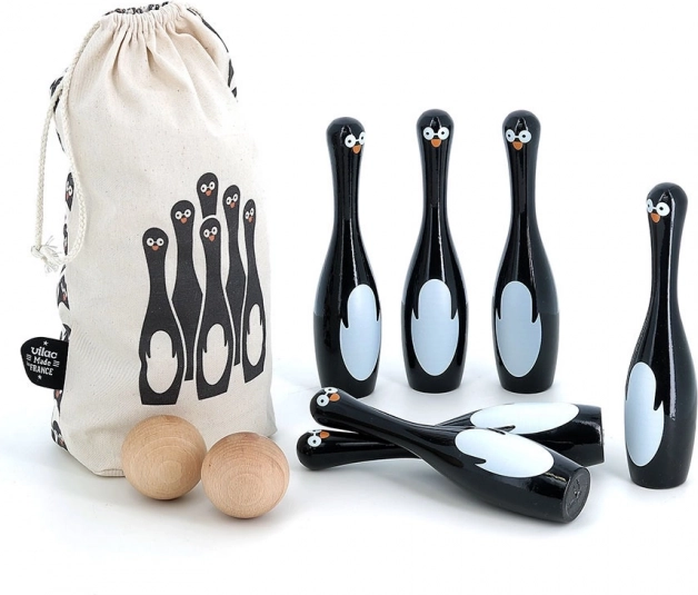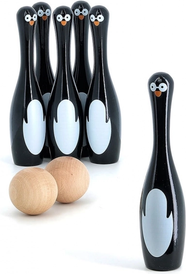 Das Set enthält sechs Kegel in Pinguinform und zwei Holzkugeln. Dieses Spiel bietet nicht nur stundenlangen Spaß, sondern hilft auch, die Motorik und Geschicklichkeit zu entwickeln. Die Kegel wurden in Frankreich unter Verwendung eines traditionellen Lackierungsprozesses hergestellt, der hohe Qualität und Haltbarkeit sichert.