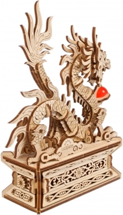 Das Modell ist vollständig beweglich und der Drache lässt sich leicht vom Sockel abnehmen. In dessen Basis verbirgt sich ein geheimes Fach – durch Drücken eines unauffälligen Knopfes im Blumenmotiv öffnen Sie Raum für eine persönliche Nachricht, einen Amulettanhänger oder den Neujahrs-Umschlag „hóngbāo“. Die Teile sind vorgeschnitten und passen exakt, sodass Sie keinen Klebstoff benötigen und der Zusammenbau Spaß macht.