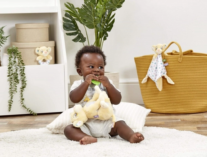 Lernen Sie den kleinen Löwen Simba kennen – einen superweichen Freund für jeden Tag. Das Plüschtier verbindet beruhigende Weichheit mit cleveren Details für sensorisches Entdecken: ein strukturiertes Bäuchlein, sanft eingefasste Ohren und ein Blatt-Beißring zur Linderung beim Zahnen.