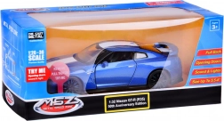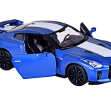 Entdecken Sie den ikonischen NISSAN GT‑R in elegantem Blau als hochwertiges Die‑Cast‑Modell 1:32. Metallkarosserie, Gummireifen und Kunststofffahrgestell verleihen dem Auto einen realistischen Look und Robustheit beim Spielen. Dank des Friction‑power-Mechanismus genügt es, das Auto über eine glatte Oberfläche anzuziehen und loszulassen.