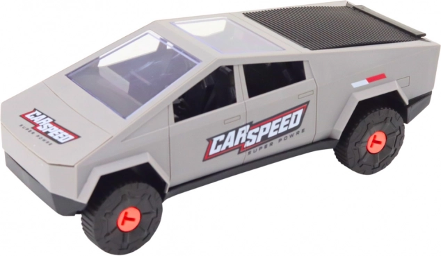 Elegantes graues Fahrzeug mit detailreicher Ausführung und futuristischen Linien, das zu actionreichem Spiel und Montieren anregt.