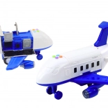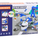 Ausgeklappt verwandelt sich das Flugzeug in eine mobile Polizeistation, aus der drei Metall-Einsatzfahrzeuge ausrücken. Auf dem Dach befindet sich eine spezielle Plattform, die beim Drücken der Taste das Polizeiauto für einen schnellen Einsatz „abschießt“. Im Set enthalten sind Verkehrsschilder, Kegel und Bäume zum Aufbau eigener Szenarien. Ein drehbarer Kran mit 360°-Rotation und eine per Drehrad bedienbare Hebebühne bieten zusätzliche Spielmöglichkeiten.