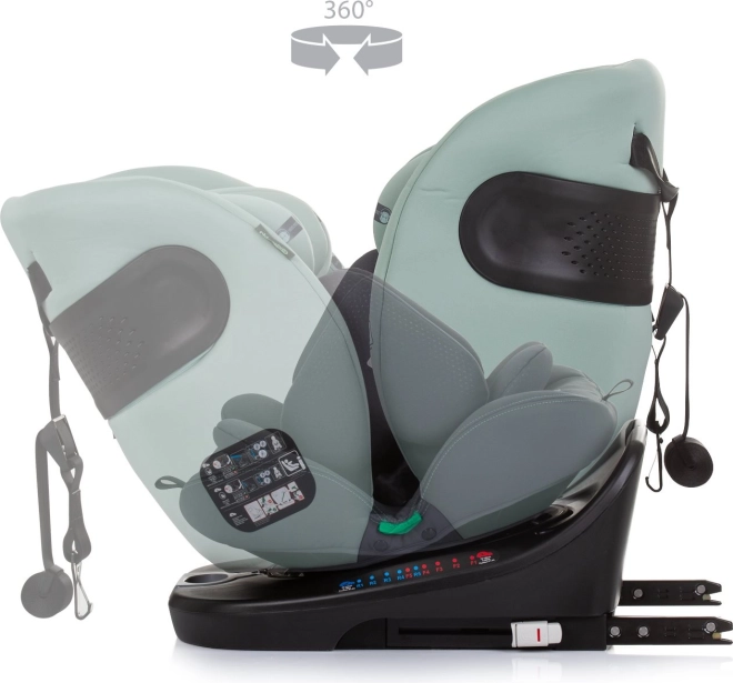 Die drehbare Basis ermöglicht das einfache Einsetzen des Kindes in den Sitz und die Nutzung in beiden Fahrtrichtungen.