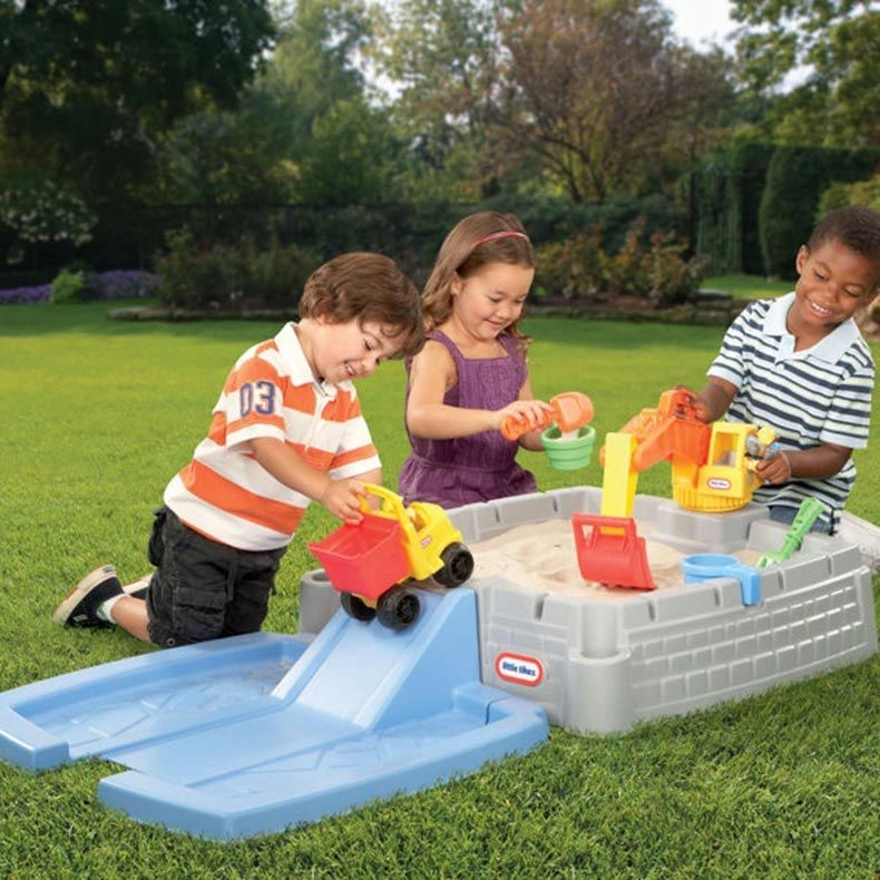 Die strapazierfähige Kunststoffkonstruktion ist für den Außeneinsatz konzipiert. Durchdachte Details wie integrierte Fächer für Werkzeuge und geformte Kanten erhöhen Komfort und Sicherheit beim Spielen. Ideal für Garten, Terrasse und Spielecken.