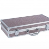 Robustes Metallgehäuse in Kupferoptik mit sicheren Verschlüssen schützt den Inhalt und wirkt zugleich stilvoll. Dank des bequemen Griffs lässt es sich leicht transportieren.