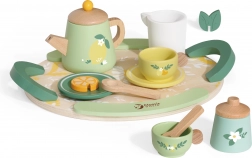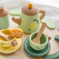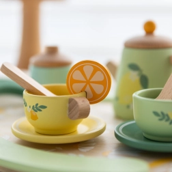 Eine pastellige Palette aus Grün und Gelb mit charmanten Zitrus- und Blumendetails regt die Fantasie an und macht das Set zu einem hübschen Accessoire für die Kinderküche.