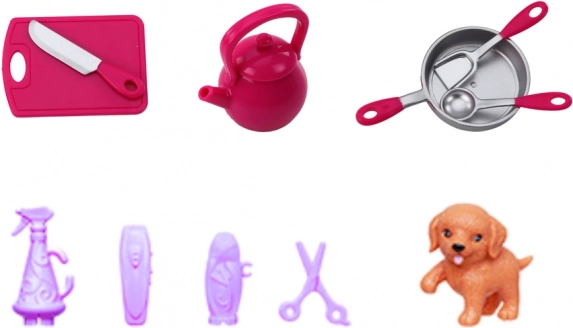 Das Set enthält kleine Küchenutensilien und Spielzeuge für das Tier, um noch abwechslungsreichere Geschichten und Alltagsszenen zu gestalten.