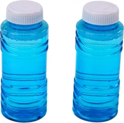 Es sind zwei Flaschen mit Flüssigkeit für stundenlangen Seifenblasen-Spaß enthalten.