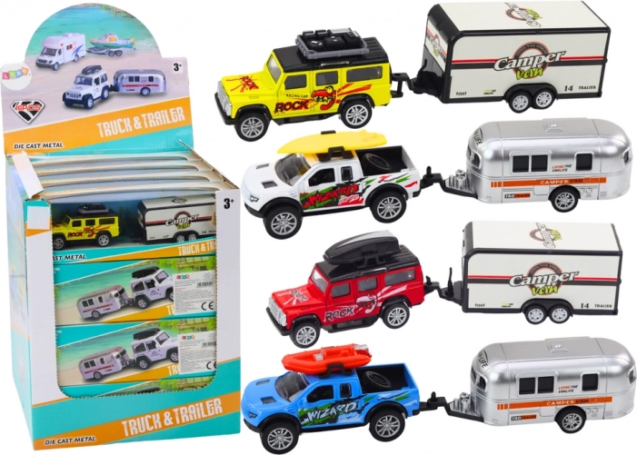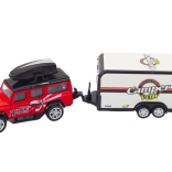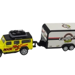 Dieses Geländewagen mit Wohnwagenanhänger ist entworfen, um kreatives Spielen voller Abenteuer zu fördern. Das Auto ist mit einem Schwungradantrieb ausgestattet, was bedeutet, dass es sich leicht bewegt und stundenlangen Spaß bietet, während der Wohnwagen Elemente der Fantasie hinzufügt.