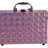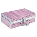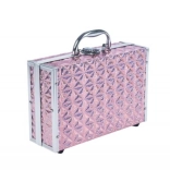 Rosa Koffer mit strukturierter Oberfläche, Metallgriff und zuverlässigem Verschluss – sieht großartig aus und schützt Ihre Kosmetik zu Hause und unterwegs.