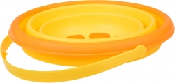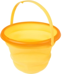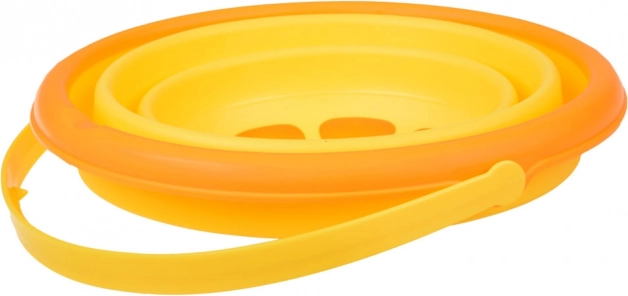 Keine sperrigen Eimer mehr im Auto. Diesen faltbaren Eimer aus weichem Silikon und Kunststoff falten Sie in Sekunden flach und genauso schnell wieder auf. Dank des bequemen Griffs lässt er sich leicht tragen, und die leuchtende Zitronenfarbe begeistert Kinder.