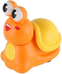Einfach das Gehäuse drücken und die Schnecke fährt los. Diese einfache Interaktion fördert die Entwicklung der grobmotorischen Fähigkeiten der Kinder.