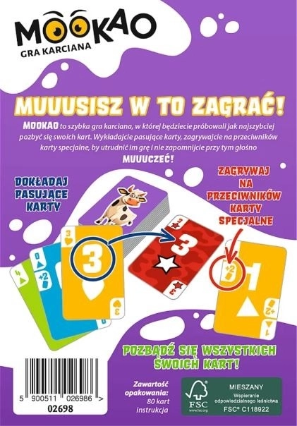 Kurze Regeln, kurze Spieldauer und lustige „Muuu“-Momente machen MooKao zur idealen Wahl für Kinder und Erwachsene. Perfekt für Ausflüge, Partys und Familienabende.