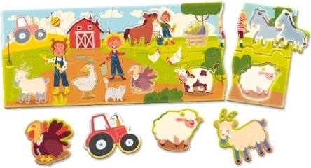 Puzzle für die Kleinsten, entwickelt zur Förderung der Grundkompetenzen von Kindern im Alter von 1 bis 4 Jahren. Das komplexe Bild vom Bauernhof bringt Freude und Spaß.