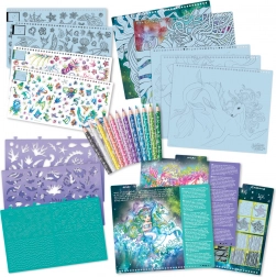In der Verpackung finden Sie eine bunte Palette an Kunstmaterialien und Zubehör, mit denen Kinder abpausen, ausmalen, zeichnen und kleben können. Dank verständlicher Schritt-für-Schritt-Anleitungen erlernen sie schnell neue Techniken und schaffen wunderschöne Bilder, inspiriert von der magischen Welt der Tiere.